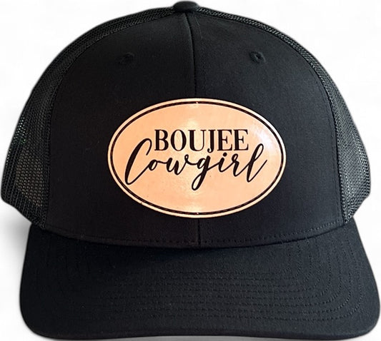 Desert Honey Black Leather Printed Patch Trucker Hat